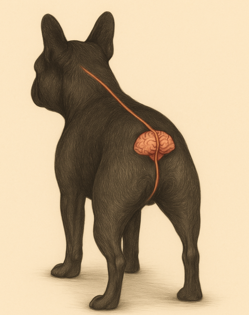 Podchvostová jamka (perineum a sacrococcygeálna oblasť) leží tesne nad koreňom chvosta, v prechode medzi kožou, svalstvom panvového dna a zakončením chrbtice. V tejto oblasti sa nachádzajú výstupy nervových koreňov sakrálnej a kaudálnej časti miechy, teda sú to priame vývody z CNS. U psa táto oblasť obsahuje zakončenia miechy + napojenia na periférne autonómne nervy (vrátane vagového systému).